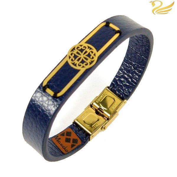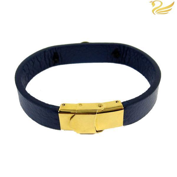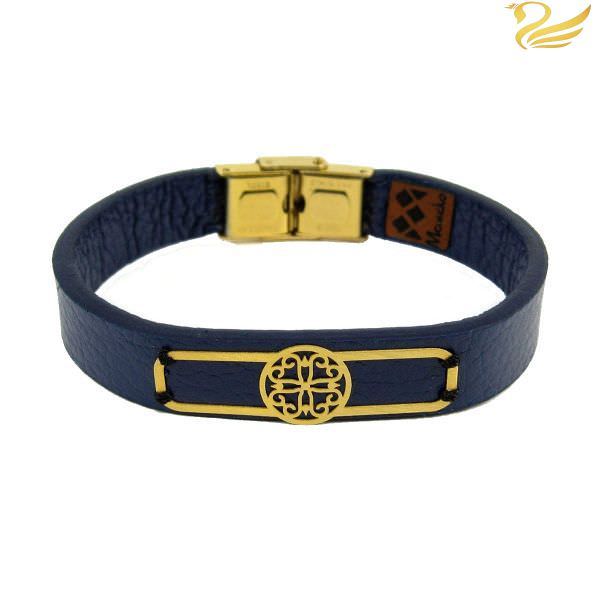 دستبند چرم و طلا 18عیار طرح گیتی و ماتریس آبی B008488