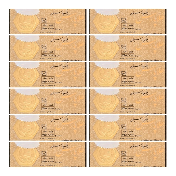 سکه طلا پارس 50 سوتی 18 عیار بسته دوازده عددی 006|6044