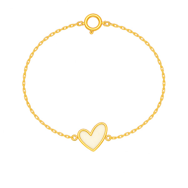 دستبند طلا 18 عیار طرح قلب ساده سفید 035|3154