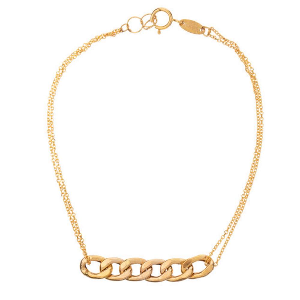 این دستبند یک انتخاب بسیار هوشمندانه و ترندی است که دو زنجیر محبوب و کلاسیک یعنی کارتیر (Cartier) و فلامینگو (Flamingo) را در ساختار طلای ۱۸ عیار خود ترکیب کرده است. طرح کارتیر با حلقههای بیضی و محکم خود، نماد لوکس بودن و استحکام است، در حالی که زنجیر فلامینگو با بافت ظریف و حلقههای صاف، جلوهای مینیمال و درخشان ایجاد میکند. مدل ۲.۱ یا طرحهای مشابه آن، معمولاً به این صورت است که بخشهایی از زنجیر کارتیر درشتتر با قطعاتی از زنجیر فلامینگو که ظریفتر است، به صورت متناوب یا چند لایه در کنار هم قرار میگیرند تا یک تضاد بصری زیبا و یکپارچه خلق کنند.