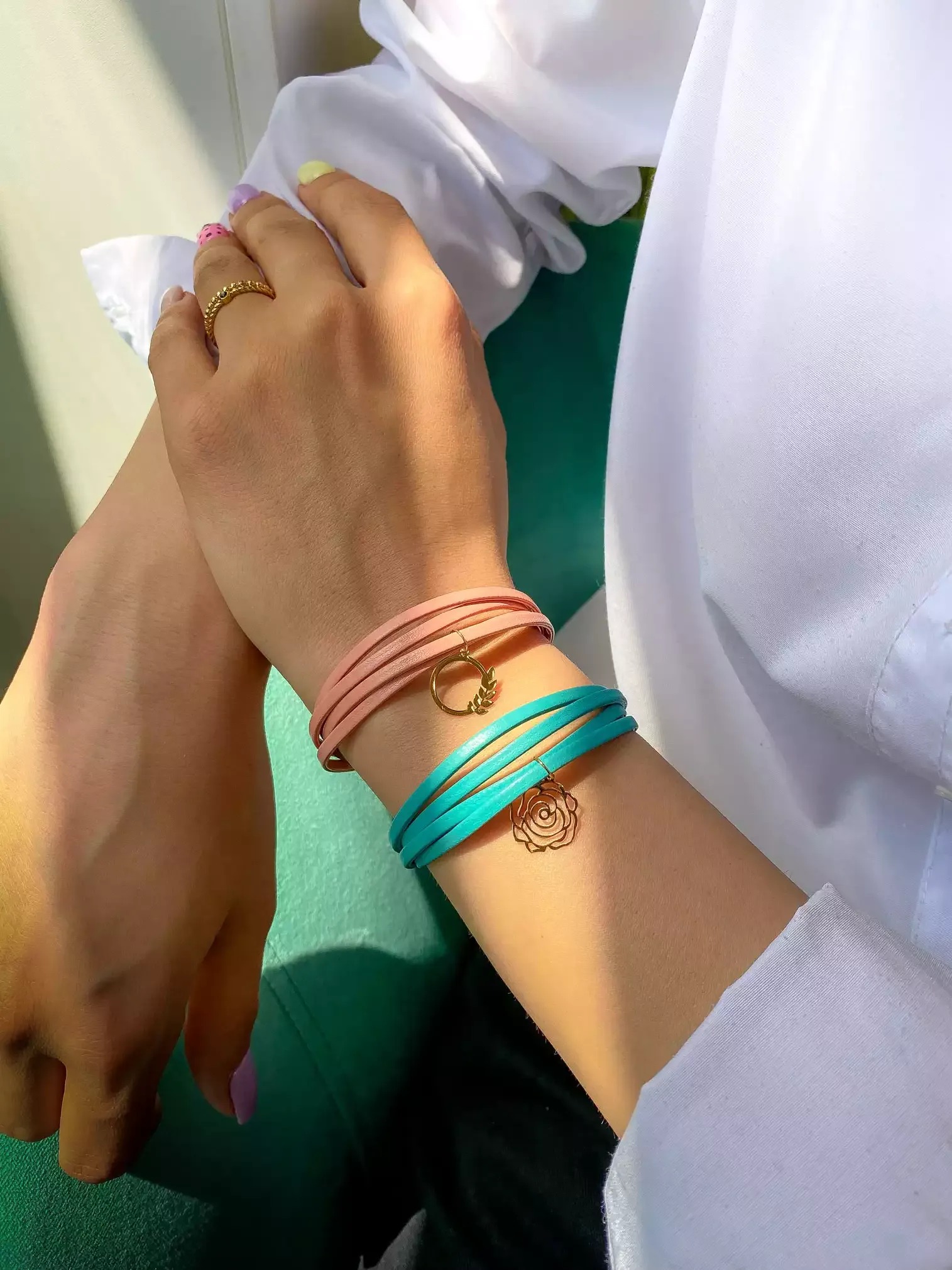 "دستبند چرم آبی طرح گل رز و خوشه گندم با طراحی دقیق و الهامگرفته از زیباییهای طبیعت، انتخابی خاص برای کسانی است که به دنبال زیورآلاتی شیک و طبیعی هستند. بند چرم آبی نرم و با کیفیت، بهخوبی با طرح گل رز و خوشه گندم ترکیب شده و به دستان شما جلوهای منحصر به فرد و زیبا میبخشد. این دستبند برای استفاده روزانه یا به عنوان هدیهای ویژه گزینهای عالی است که میتواند استایل شما را تکمیل کند."