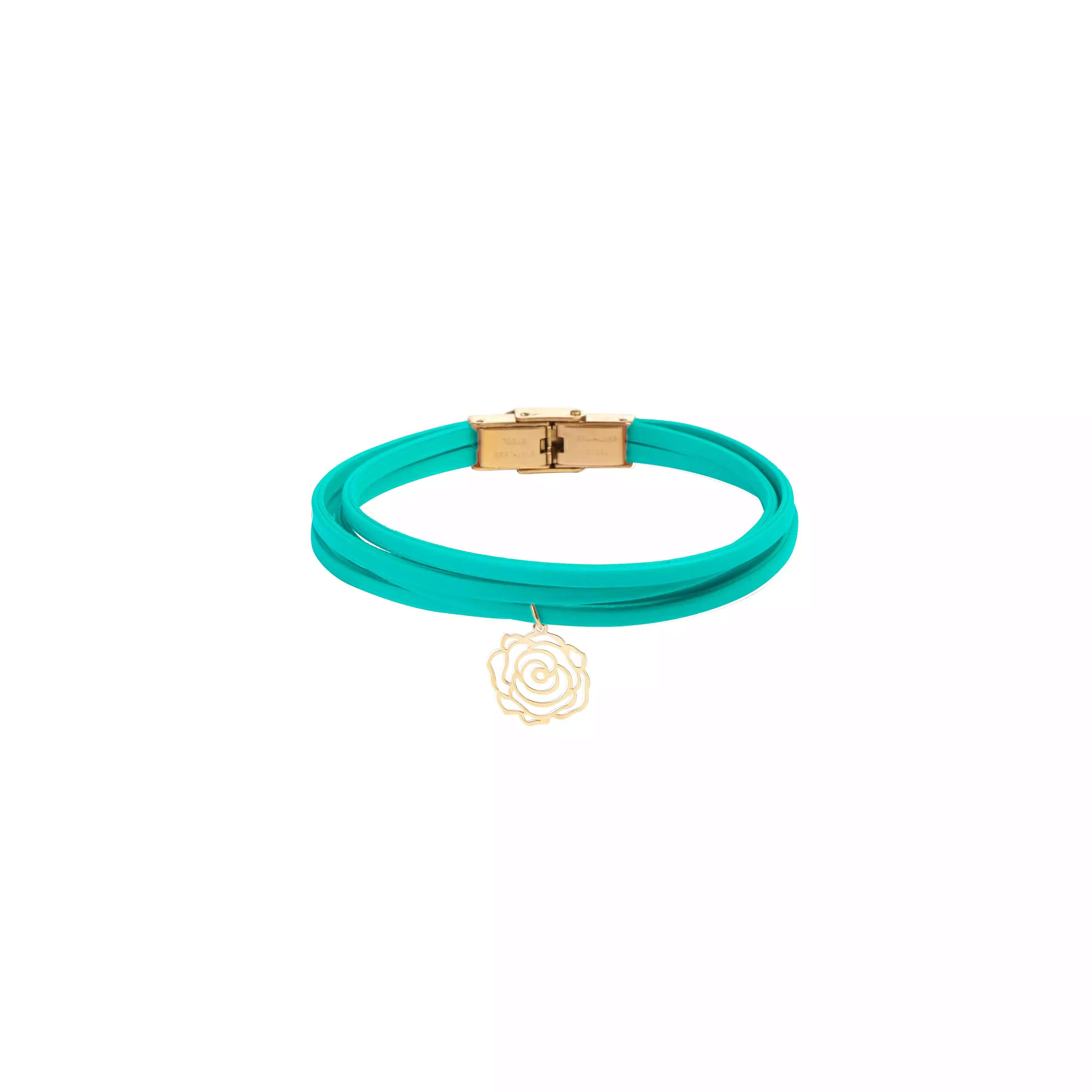 دستبند چرم آبی با پلاک طلا 18 عیار طرح گل رز 100001473