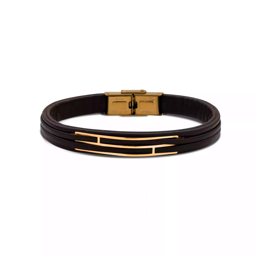 دستبند چرم مشکی فیوژن طلا 18 عیار 100001423