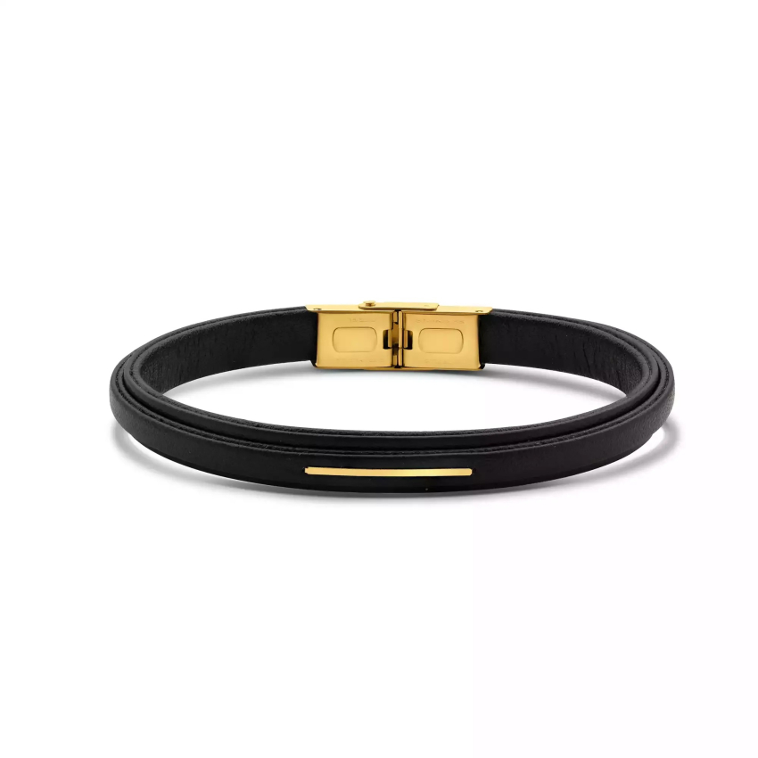 دستبند چرم ساده لاین طلا 18 عیار 100001479