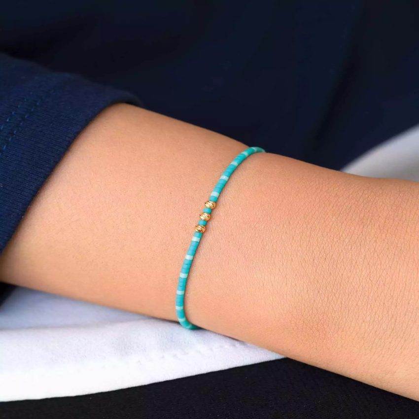دستبند مهره آبی و گوی البرنادو طلا 18 عیار 100001409