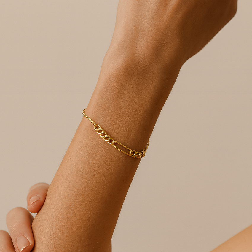 دستبند طلا 18 عیار طرح فیگارو ترکیبی 006|2084