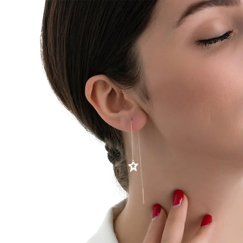 گوشواره بخیه ای طلا 18عیار طرح بخیه ای ستاره خالی E002438
