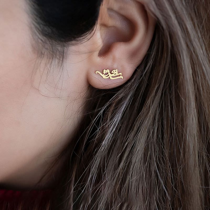 گوشواره طلا 18عیار زنانه میخی طرح عشق پایدار E032823