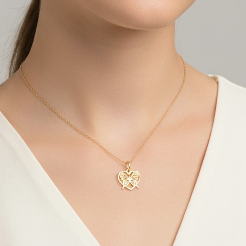 پلاک طلا 18 عیار طرح قلب و پروانه قو طلایی 100000733