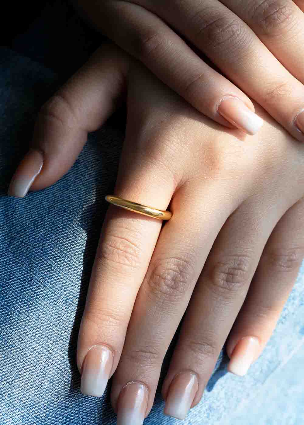 سایز 55: رینگ ساده طلا یکی از پرکاربردترین، قدیمی ترین و شیک ترین آیتمهای اکسسوری میباشد. یک رینگ ساده طلا ظاهر شیک و زیبایی به دستان شما خواهد داد. هرچند که بیشترین کاربرد آن برای افراد متاهل میباشد، اما برای به دست کردن یک رینگ ساده لزوماً نباید متاهل باشید. همچنین، شما عزیزان میتوانید این رینگ ساده و زیبا را در هر انگشتی که تمایل دارید بیندازید. بسیاری از خانمهای خوش پوش ترجیح میدهند انگشتر طلا رینگ ساده خود را در مهمانیها به دست کنند و برای استفاده روزمره به سراغ رینگ های ساده طلا میروند، چرا که این رینگها در عین سادگی بسیار شیک و زیبا هستند. شما عزیزان در گالری قو طلایی میتوانید رینگهای ساده طلا را با قیمتی بسیار مناسب تر از سایر گالری ها تهیه بفرمایید.