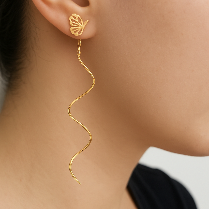 «این گوشواره طلا ۱۸ عیار زنانه با طراحی خاص پروانه نیمه و آویز فنری، ترکیبی از ظرافت و جذابیت است. وزن سبک و طراحی فنری باعث راحتی در استفاده روزانه میشود و طرح پروانه نیمه، حس خاص بودن و تمایز را به استایل شما میدهد. مناسب بانوانی که به دنبال زیورآلات خاص و مدرن هستند. این مدل انتخابی عالی برای هدیه به عزیزان شما نیز خواهد بود.»