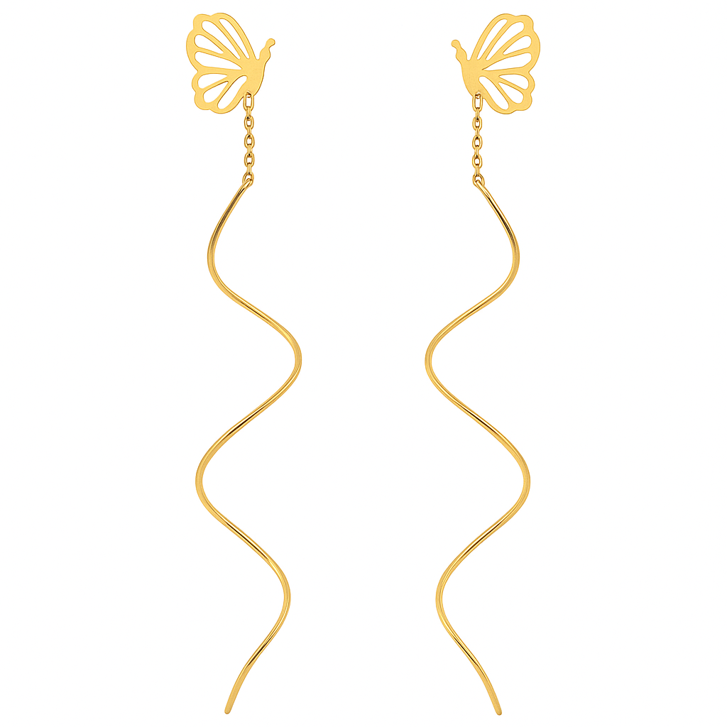 گوشواره طلا ۱۸ عیار فنری طرح آویز پروانه نیمه 017|5627