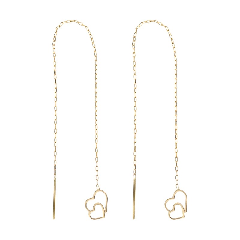 گوشواره طلا 18 عیار بخیه ای طرح دو قلب 100001612