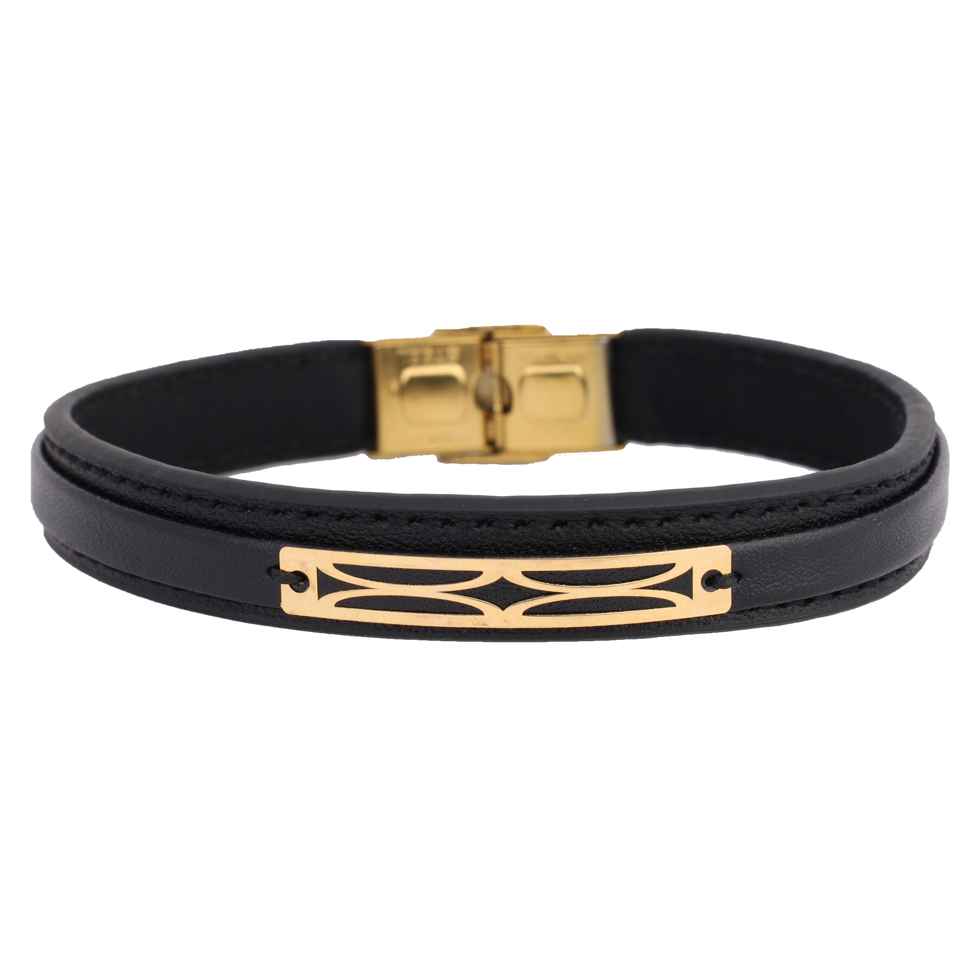دستبند چرم طلای 18 عیار طرح هرمن 049901