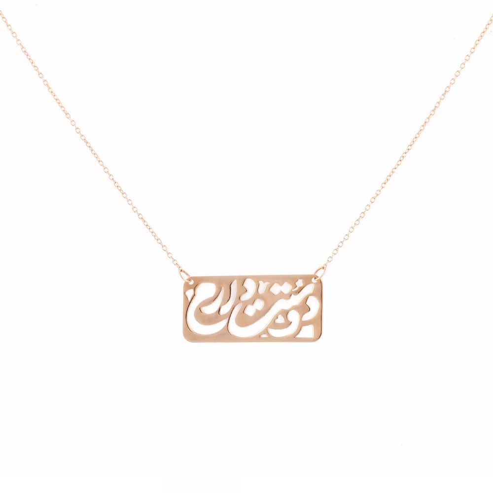 گردنبند طلا 18عیار طرح دوستت دارم در مستطیل N032928