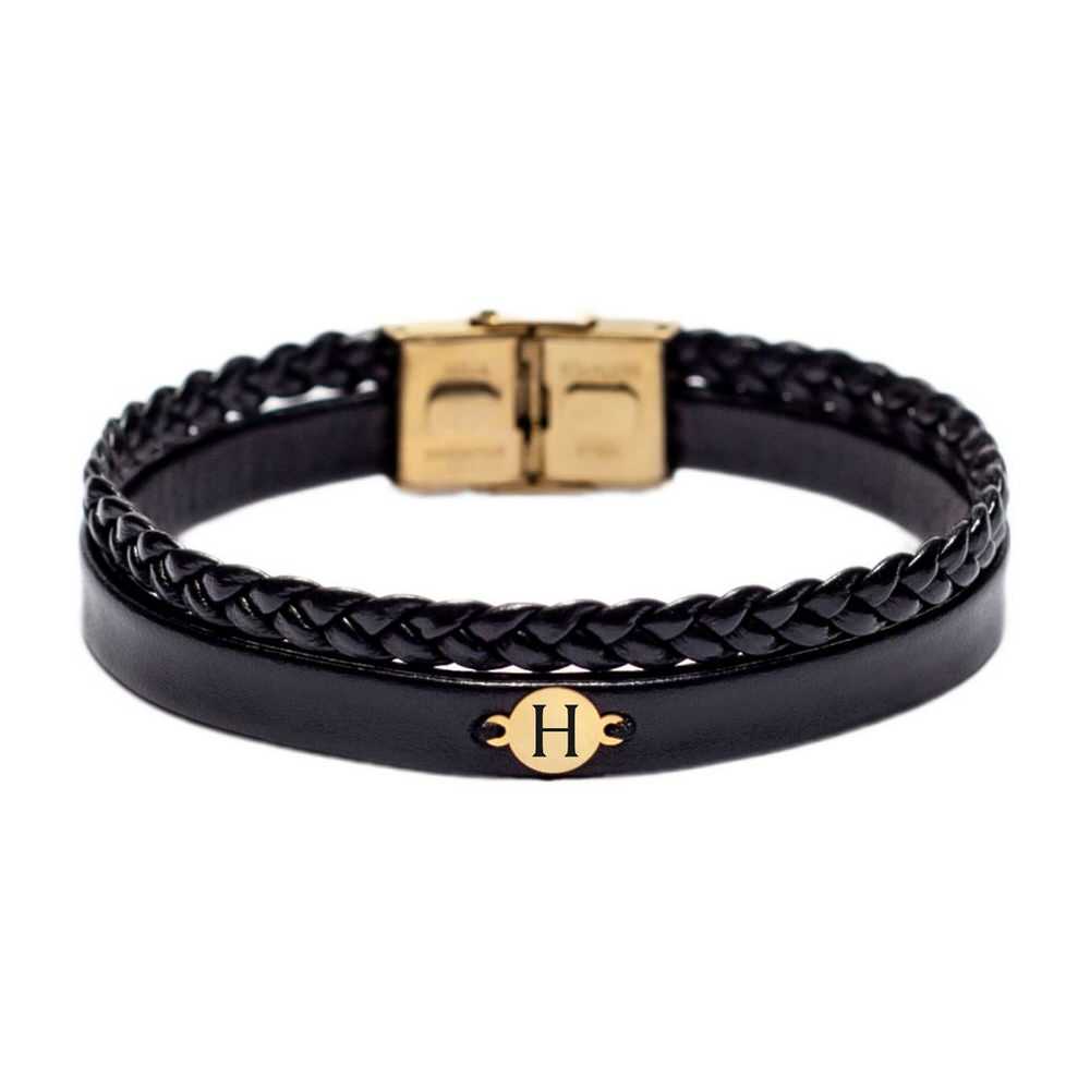دستبند مردانه طرح حرف H در دایره ساده B024773