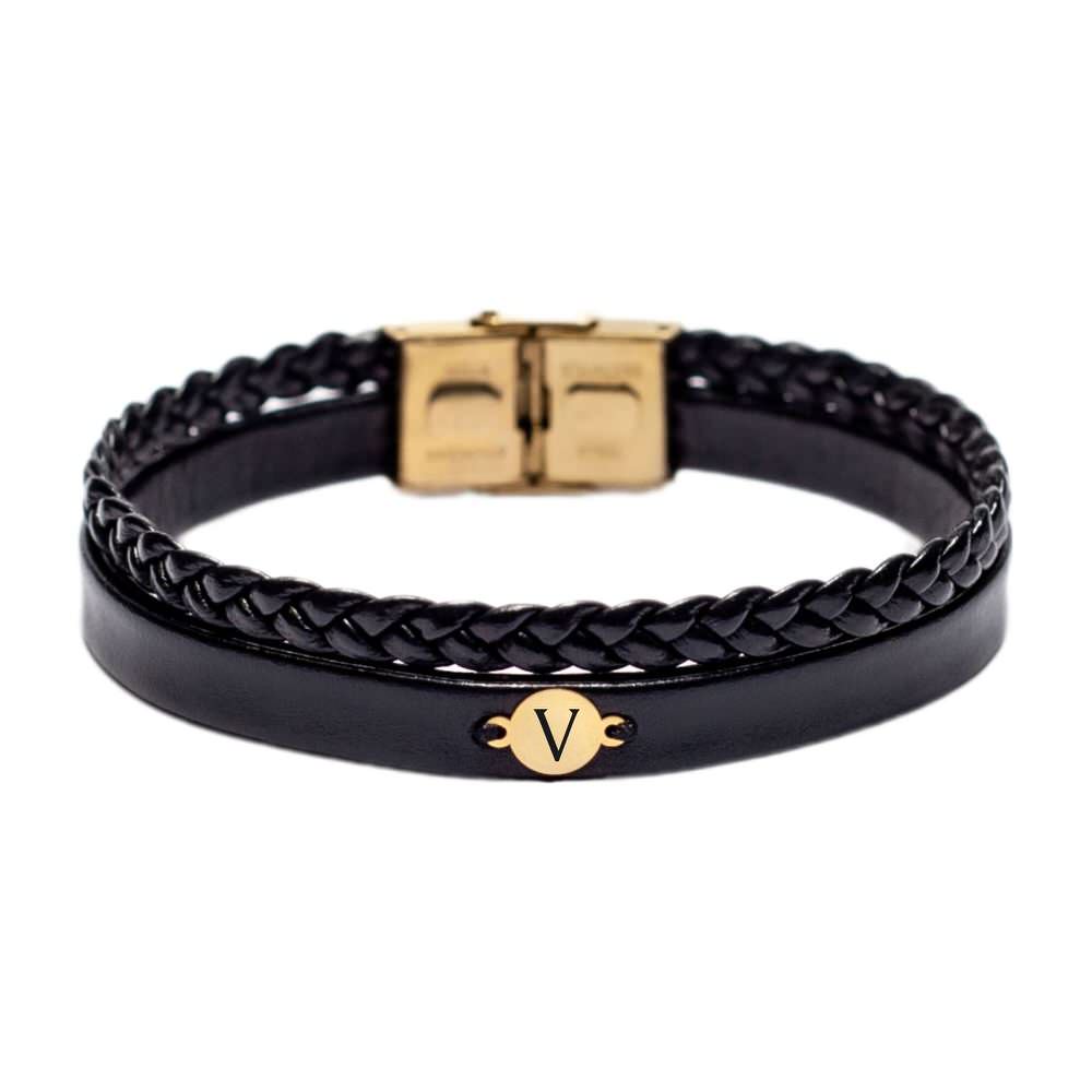 دستبند طلا ۱۸ عیار مردانه طرح حرف V در دایره ساده، با پلاکی دایرهای از طلای خالص ۱۸ عیار ساخته شده که حرف V در مرکز آن نقش بسته است. فرم دایره، نماد بیپایانی و استواری است و در کنار حرف شخصی، جلوهای قدرتمند و معنادار پیدا میکند. بند چرمی مشکی یا قهوهای مقاوم در کنار درخشش طلا، تضادی لوکس و مردانه ایجاد کرده که با هر استایلی — از اسپرت تا رسمی — هماهنگ است. این مدل سبک، بادوام و نمادی از اعتمادبهنفس است.