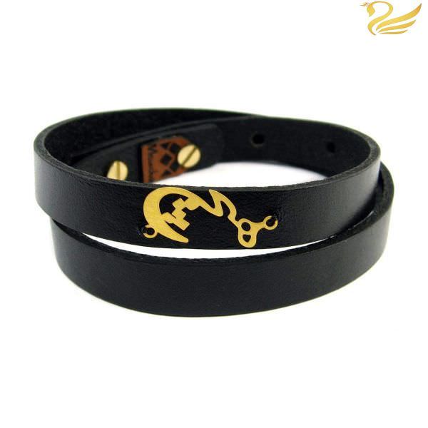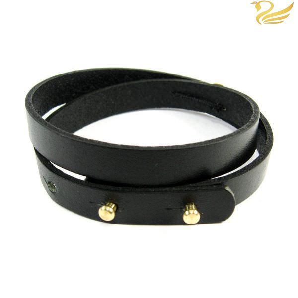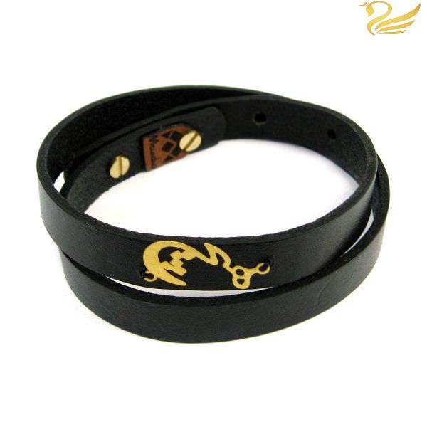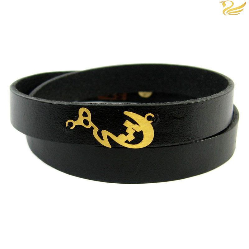 دستبند چرم و طلا 18عیار طرح هیچ B050266