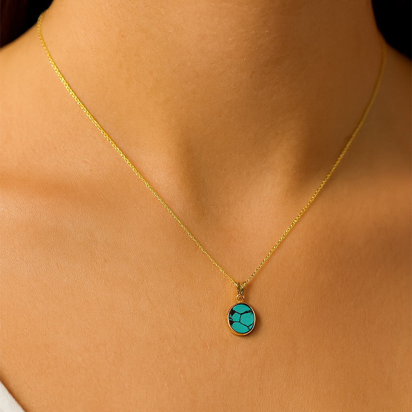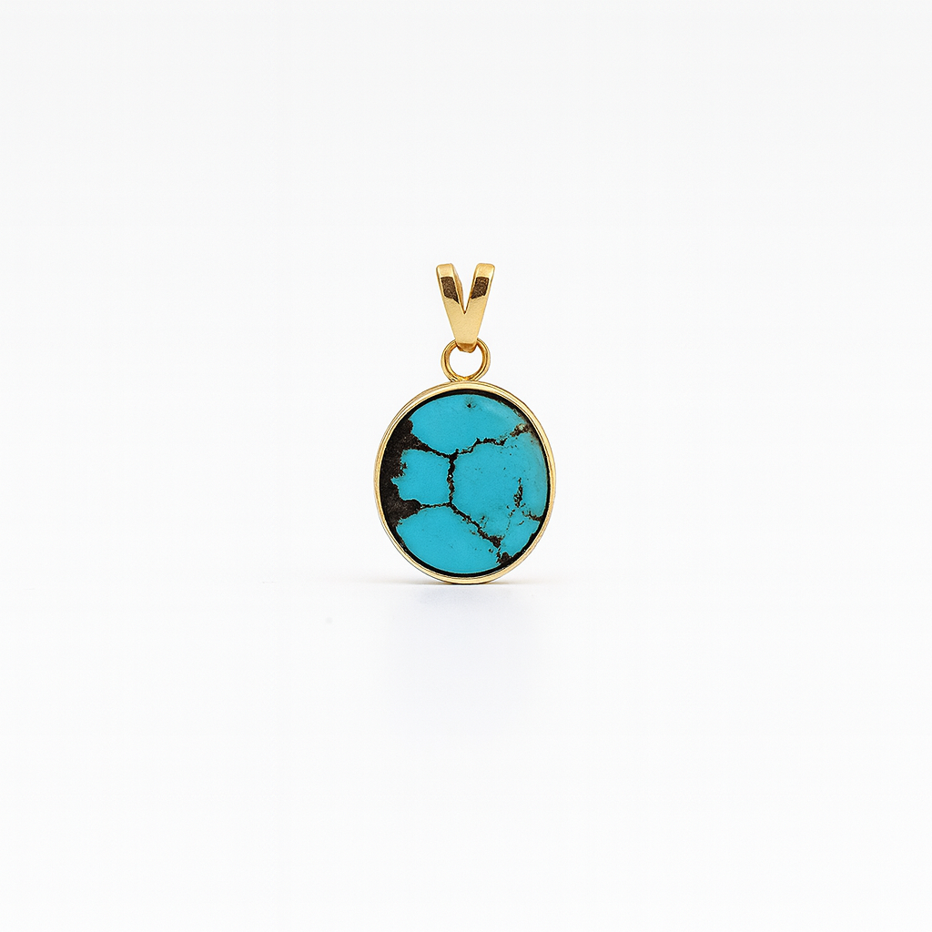 پلاک طلا 18 عیار با سنگ فیروزه دایره کوچک 63|4721