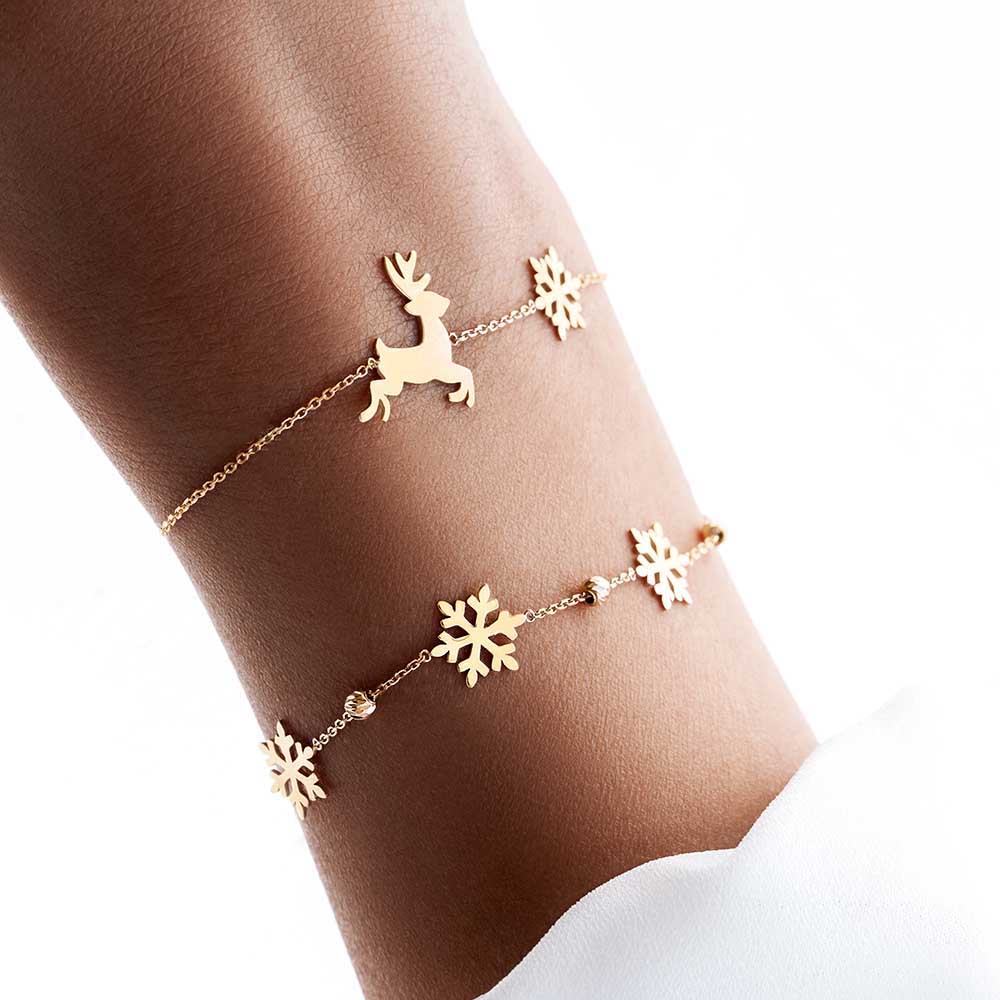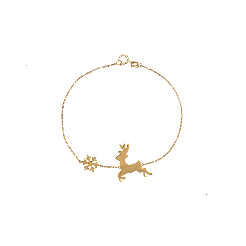 دستبند طلا 18 عیار طرح برف رودولف گوزن کریسمس B012343