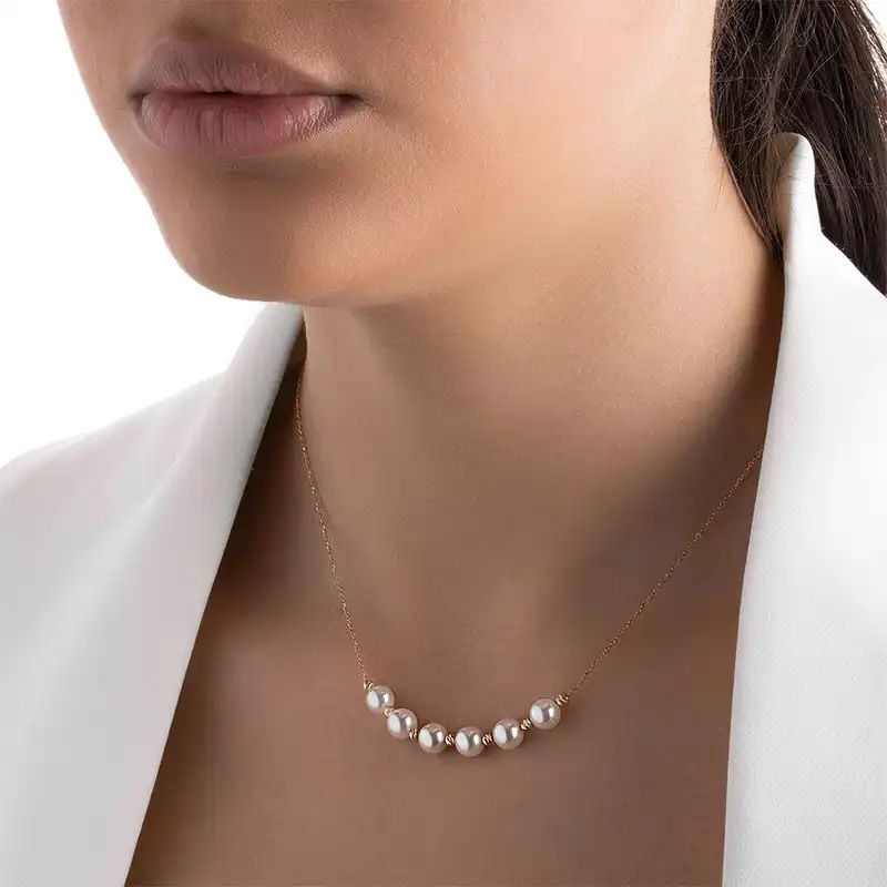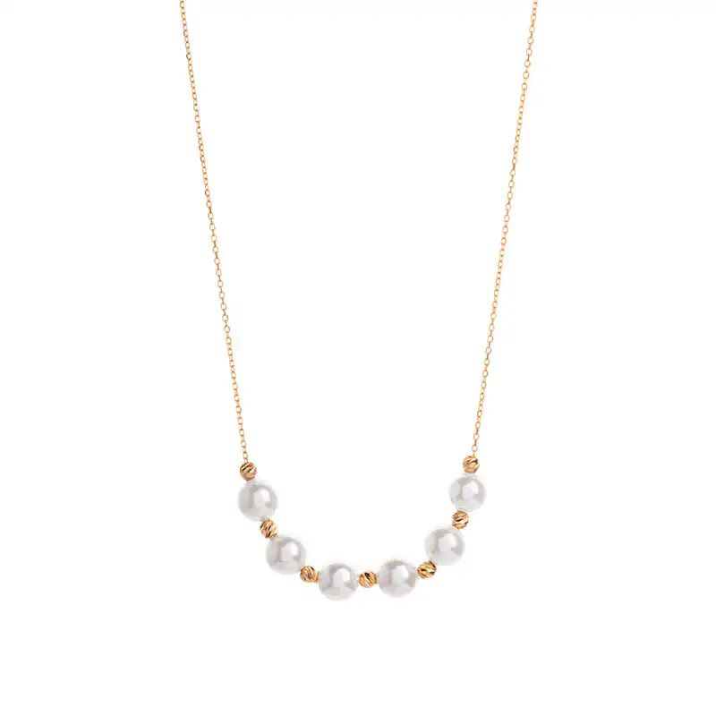 گردنبند طلا 18عیار طرح شش مروارید و البرنادو N043371