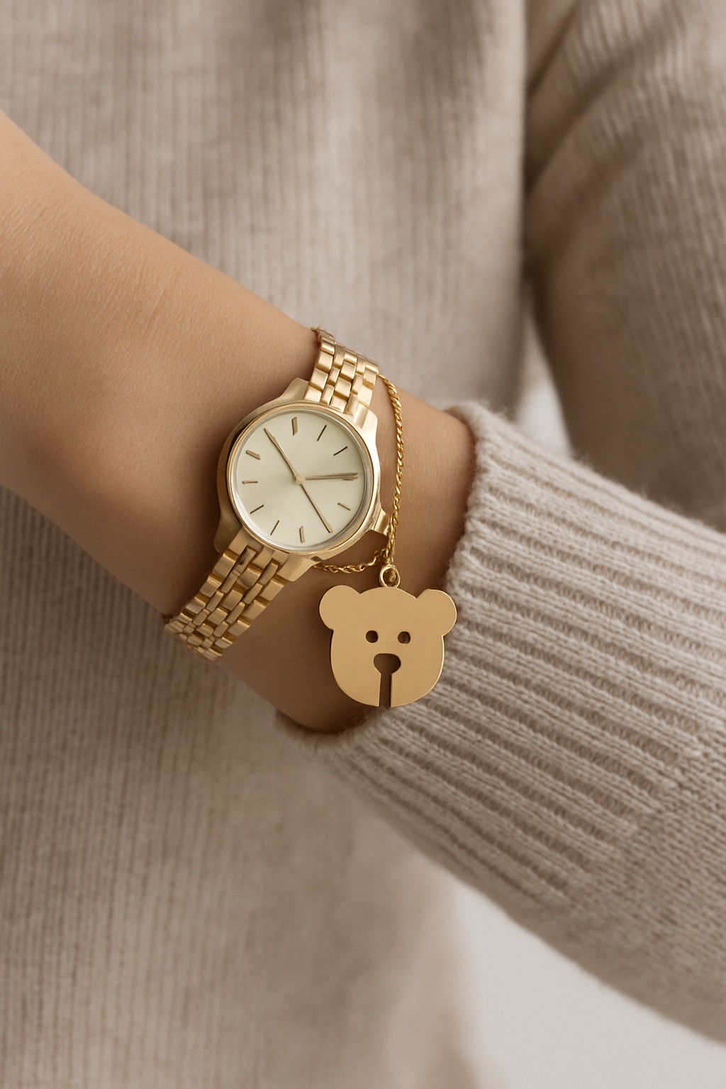 آویز ساعت طلا ۱۸ عیار طرح خرس تدی ، نمادی از محبت، معصومیت و شادی کودکانه است. این آویز از طلای اصل ۱۸ عیار ساخته شده و با طراحی جذاب و درخشان خود، حس صمیمیت و گرما را در نگاه اول منتقل میکند. مدل خرس تدی یکی از محبوبترین طرحهای فانتزی است که در عین سادگی، جلوهای دلنشین و خاص به ساعت یا دستبند شما میبخشد. گزینهای عالی برای هدیه دادن به عزیزان یا تکمیل استایلهای لطیف و دخترانه.