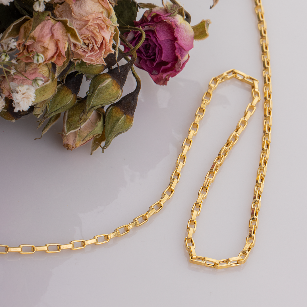این زنجیر از مستطیل های کوچک تشکیل شده که در نهایت دقت و ظرافت در هم تنیده شده اند. شما میتوانید این زنجیر زیبا را در مناسبت ها و استایل های گوناگون به مچ خود بیندازید و جذابیت خود را چندین برابر کنید