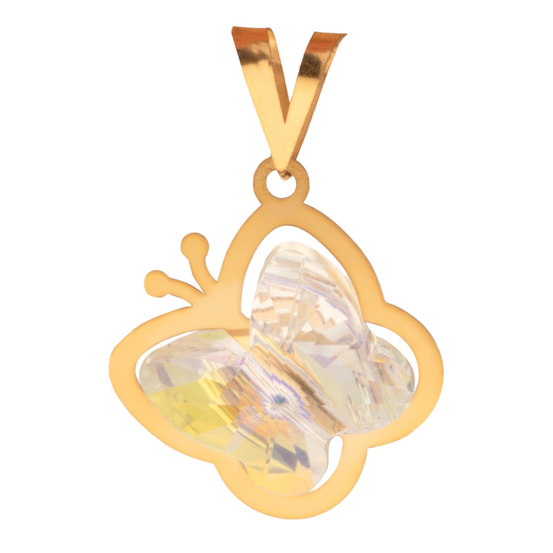 پلاک طلا 18 عیار طرح پروانه سواروسکی هفت رنگ شاین 100000914